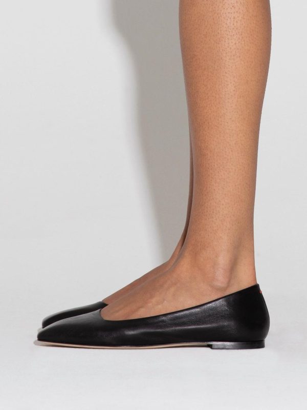 A modern take on ballerina flats, the sleek, minimal profile of Ida ensures this pair is a chic everyday option. Crafted from nappa leather, this design has squared vamps that mirror the brand-signature sloped toes.