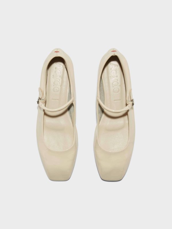 An iconic design for Aeyde, the Uma Mary-Jane flats are further elevated in cream. Crafted from glossy patent leather, this design is completed with comfortable rounded straps and sloped, squared toes–features signature to this style.