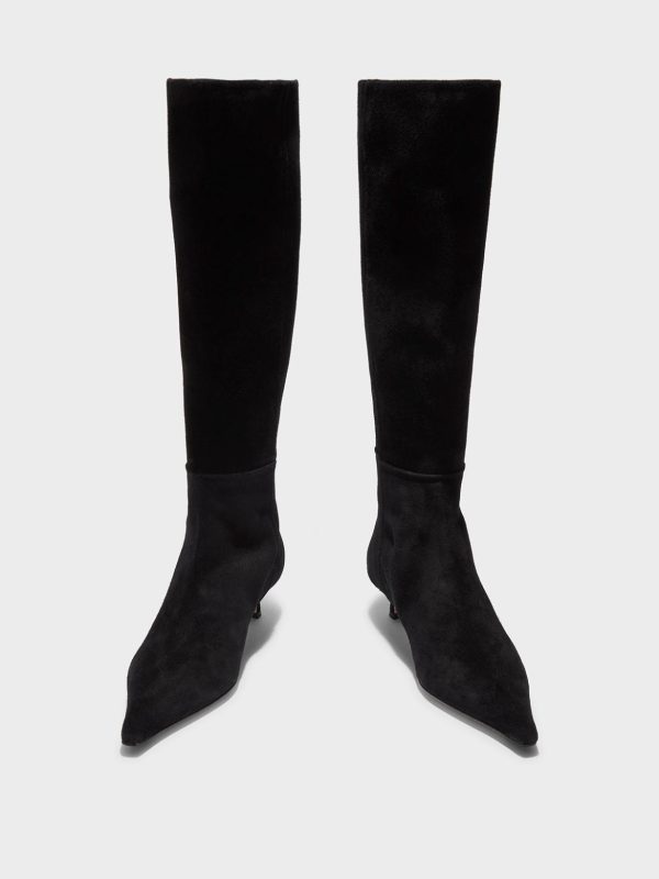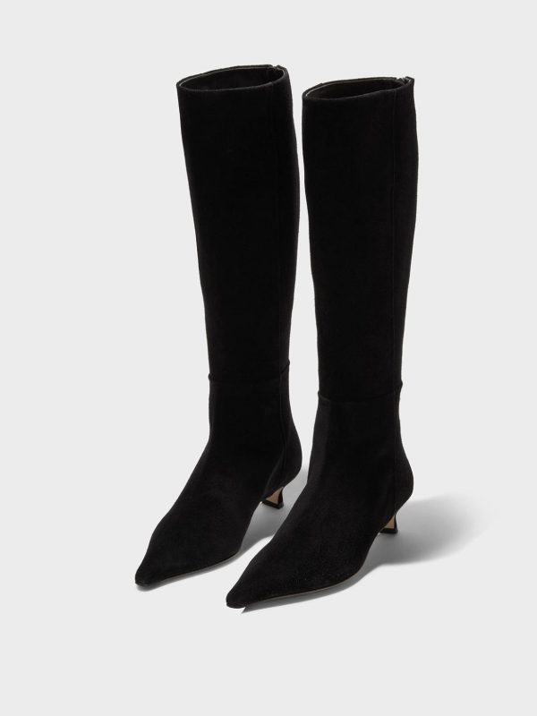 Zazie are Aeyde’s chic, chisel-toe knee-high boots designed in sleek profile with wearable kitten heels and understated seamed shafts. This design is the sister style to Aeyde’s Zoe ankle boots.