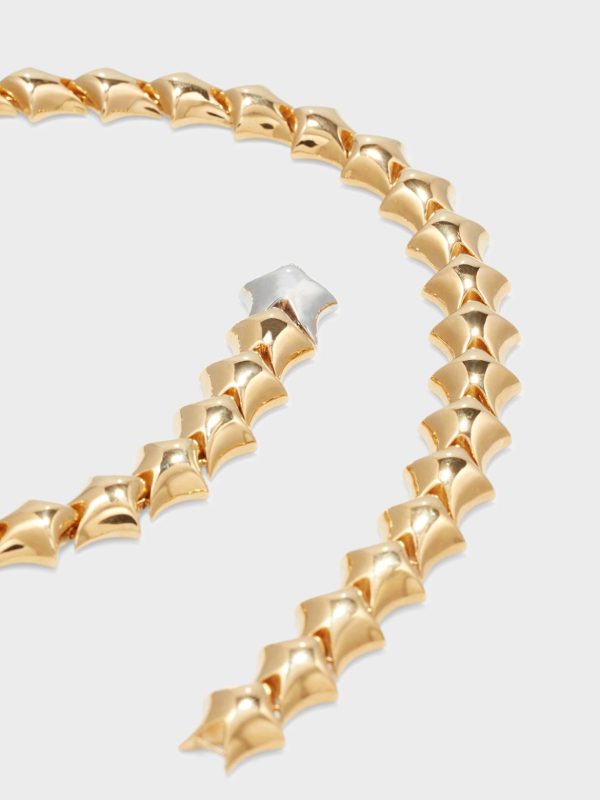 Aeyde releases Banks, complete with miniature spurs, as part of the Cowboy Capsule. This necklace, handcrafted from upcycled 18kt gold plating and silver-toned palladium plating on brass, will sit comfortably above the collarbones.