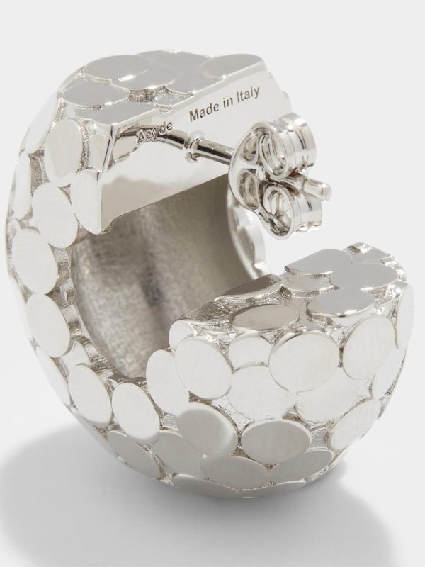 Aeyde jewelry is made in Italy by craftspeople renowned for their expertise in working with upcycled materials and palladium and 18kt gold plating.