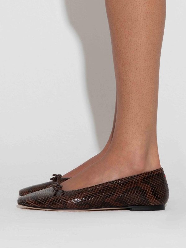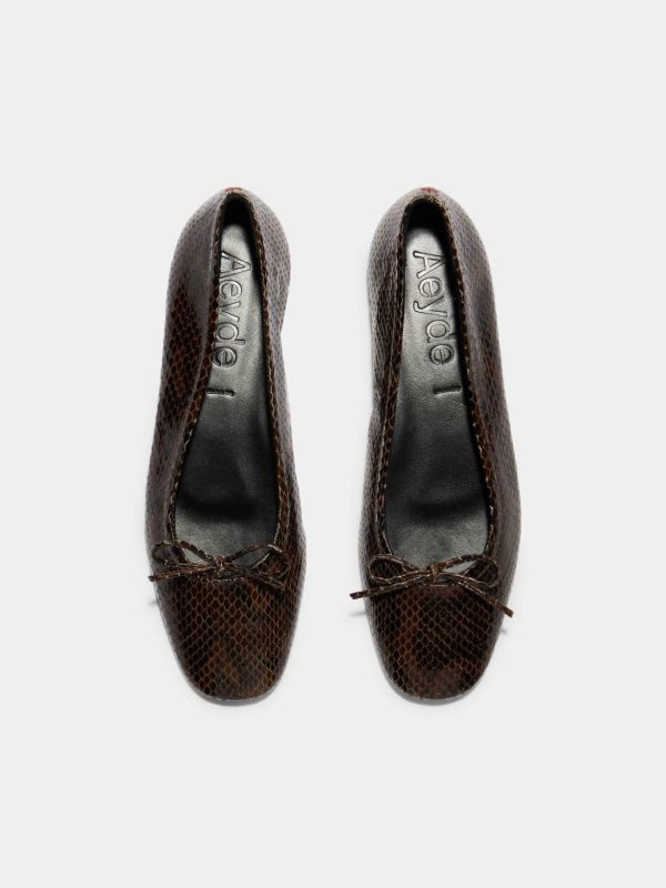 Delfina expands on Aeyde’s established ballet signatures, Darya and Delia. Adhering to the brand’s dual design tenets of modernity and minimalism, this pair is crafted from elegant snake-effect leather and unlined for lightweight comfort.