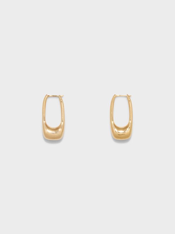 Ellis are medium-sized contemporary drop-hoop earrings that balance slender proportions with sculptural bases.
