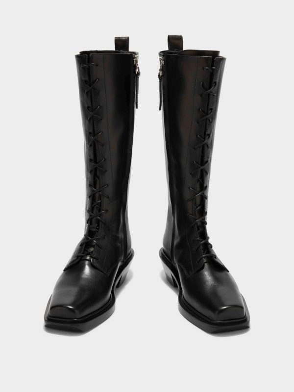 Hetta are mid-height boots from Aeyde’s Biker Capsule. Minimal in palette but elevated in design, this pair is crafted from calfskin with the house’s take on biker features, such as square toes, stacked and chiseled soles, and exaggerated rands.