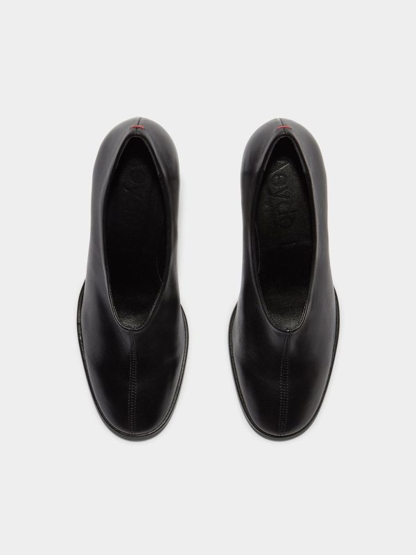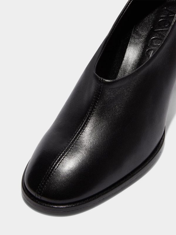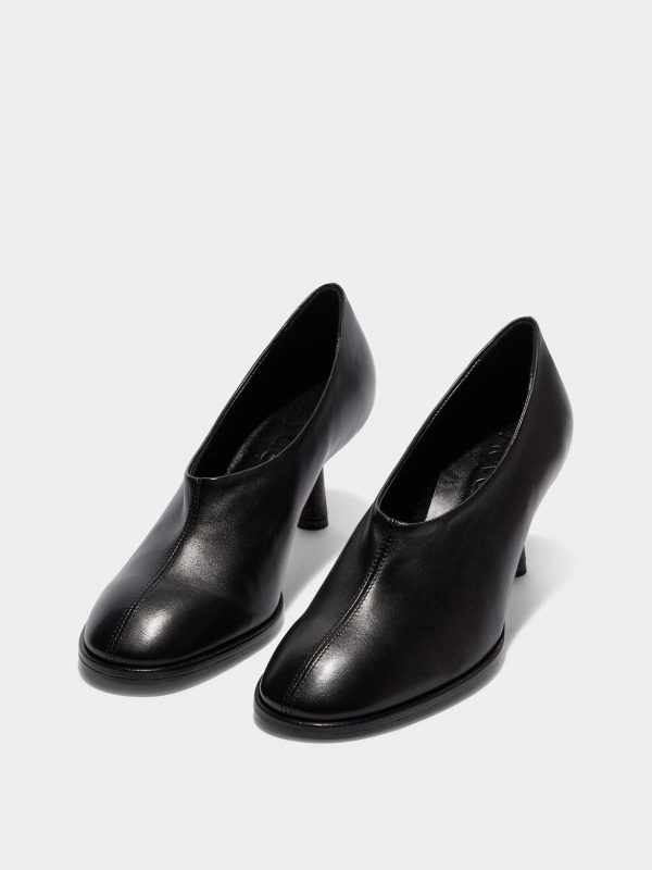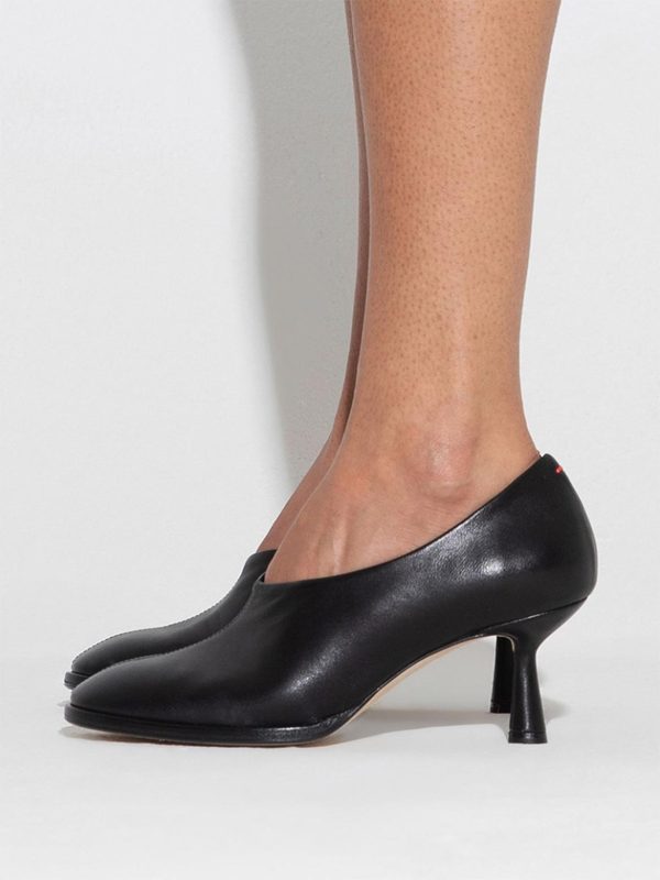 Izzy from Aeyde are pumps designed in an unexpected silhouette with high-cut vamps and outsized, covered rands. This design is crafted from soft nappa leather and lined in lambskin for assured comfort.