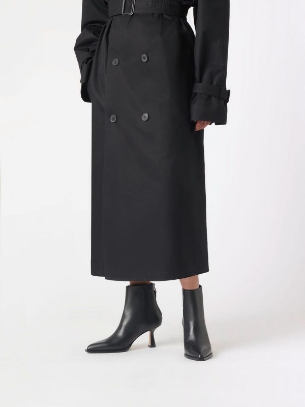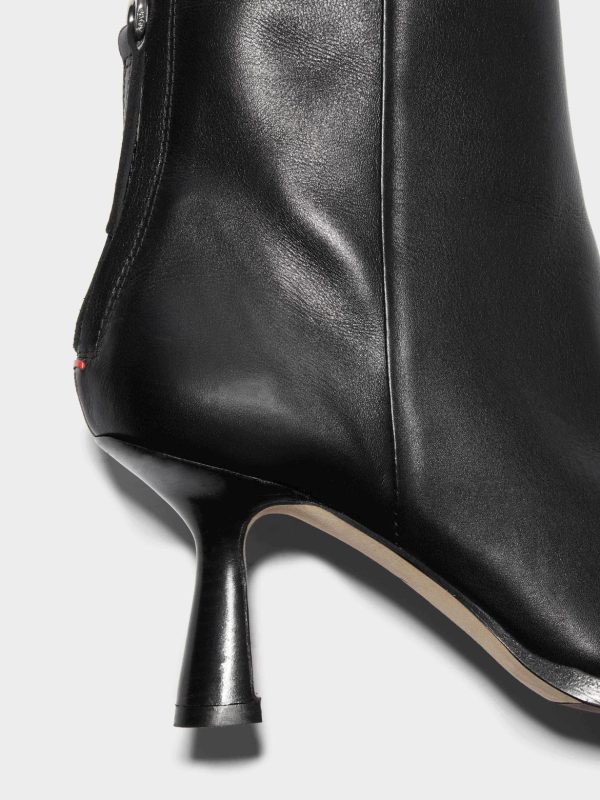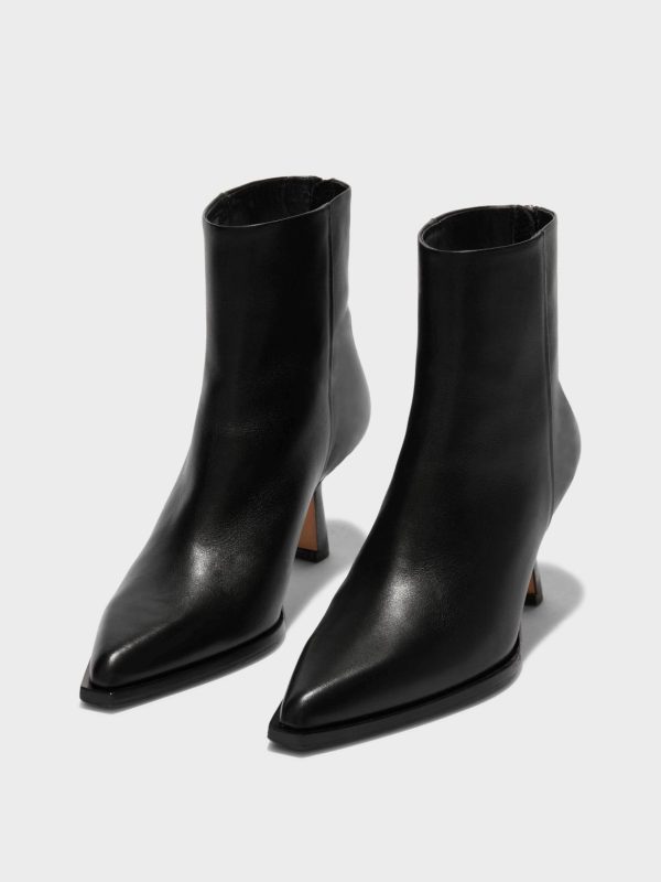 Aeyde’s Kala ankle boots are a sophisticated design featuring exaggerated point toes and tapered stiletto heels.
