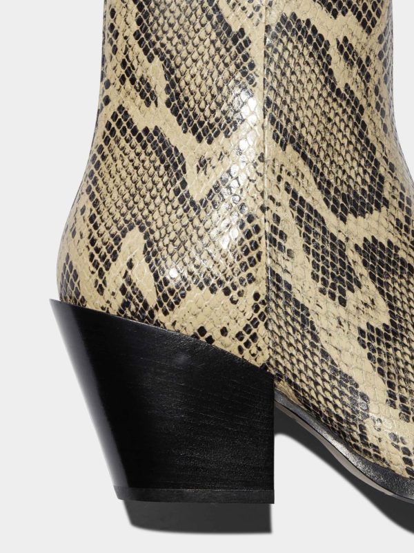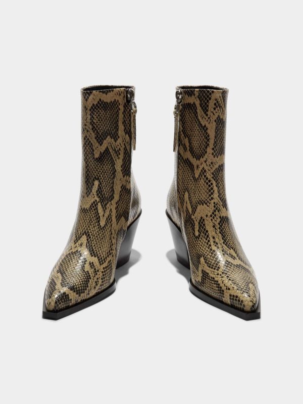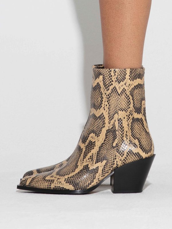 Part of Aeyde’s Cowboy Capsule, Kara are ankle boots crafted from snake-effect calfskin leather and lined in lambskin for comfort. Concealed zips maintain this design’s sleek fit and continuous lines.