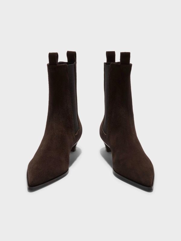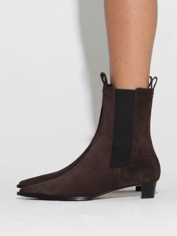 Designed in a pointed profile with neat toes and tapered heels, Kiki is Aeyde’s elevated iteration of Chelsea ankle boots. This pair arrives in supple suede with classic ankle pull tabs and rand soles.