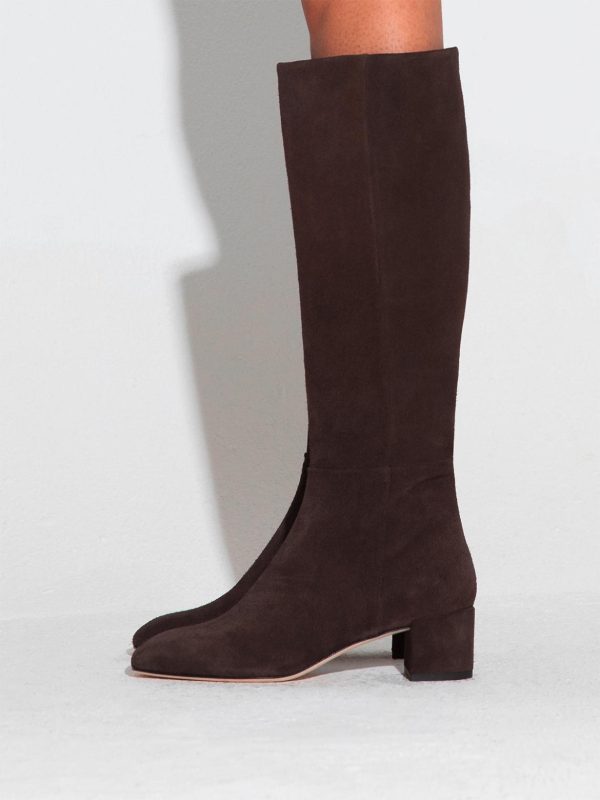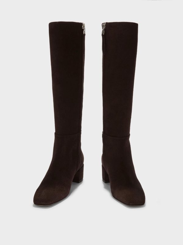 Laura are sleek knee-high boots with squared toes, sturdy block heels, slim shafts, and full-length zips.