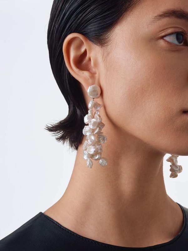 Part of the Pearl Capsule, Aeyde’s Rudi drop earrings are strung with Keshi pearls made from solid nacre, which is renowned for its remarkable luster. They are fitted with silver palladium-plated stud closures.