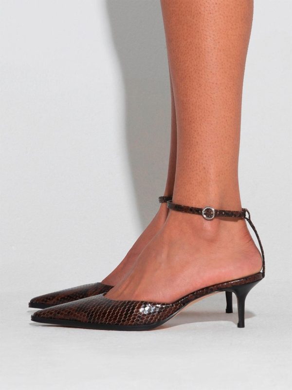 Sarina Snake-Effect Leather Ankle-Strap Pumps | Women Aeyde Pumps