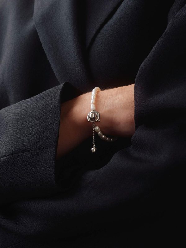 Part of the Pearl Capsule, Aeyde’s Seth bracelet is strung with Keshi pearls made from solid nacre, which is renowned for its remarkable luster. It’s fitted with an adjustable silver palladium-plated spring-ring closure.