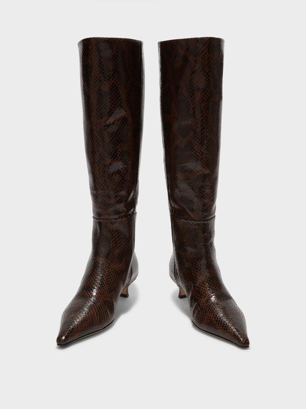 Zazie Snake-Effect Leather Knee-High Boots | Women Aeyde Knee-High Boots