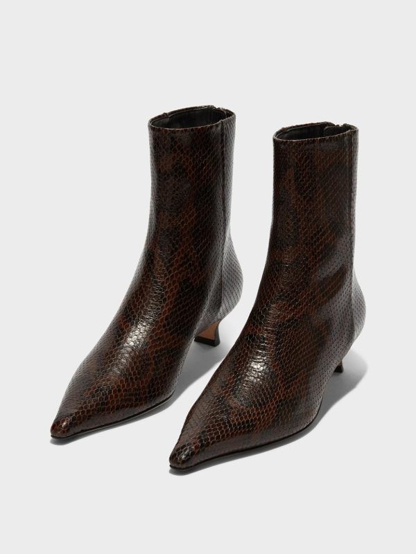 Zoe are Aeyde’s chic, chisel-toe ankle boots designed in a sleek profile with wearable kitten heels and leather pull-tabs at the zips. This design is the sister style to Aeyde’s Zazie knee-high boots.